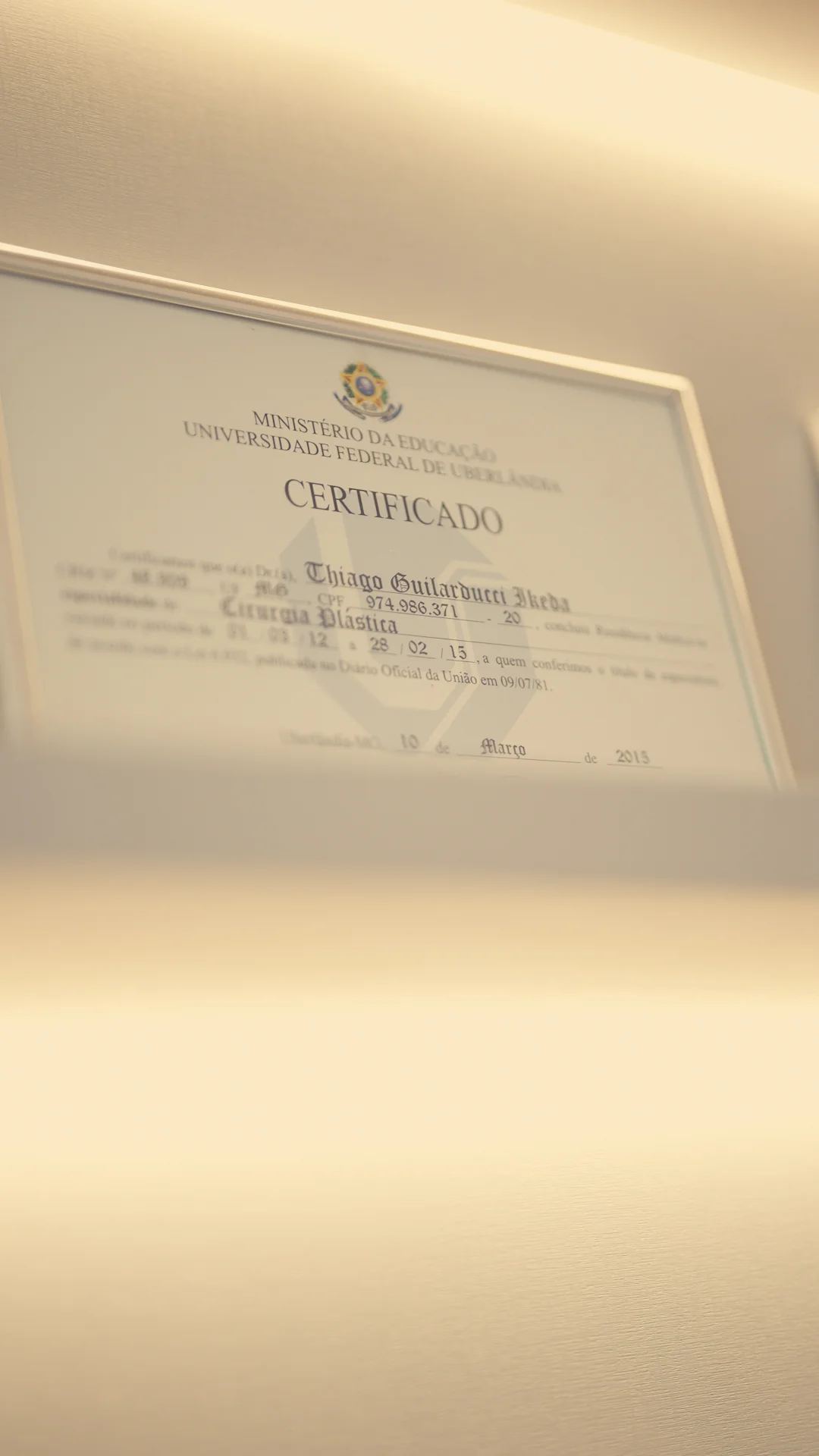 Pela Universidade Federal do Triângulo Mineiro, onde formei em Medicina e realizei a residência médica em Cirurgia Geral. Após, fui aprovado em Cirurgia Plástica (uma das residências cirúrgicas mais concorridas) na Universidade Federal de Uberlândia, na qual realizei inúmeras cirurgias reparadoras e estéticas, além do tratamento de queimados. Logo após receber o título de Cirurgião Plástico, fui aprovado a membro da Sociedade Brasileira de Cirurgia Plástica após intensa e árdua avaliação, podendo participar nos eventos científicos nacionais e internacionais promovidos por esta Sociedade.